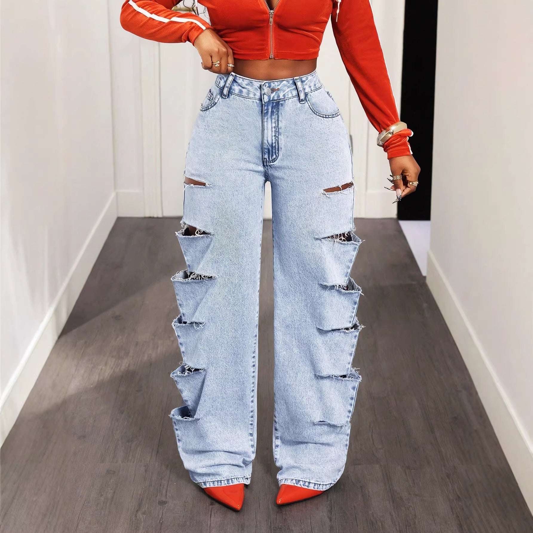 Fashionable Womens Casual Jeans Feature A Relaxed Fit